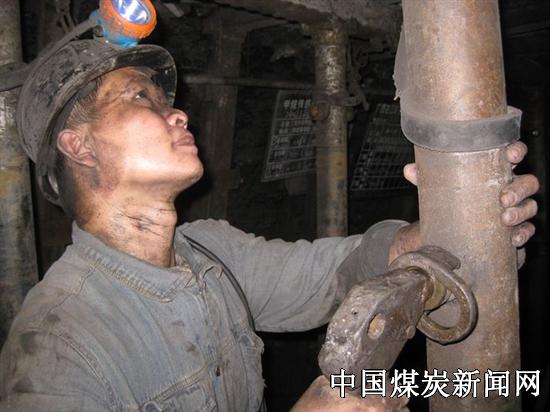 ![]() 图为何金高在井下采煤工作面上支架的情景。