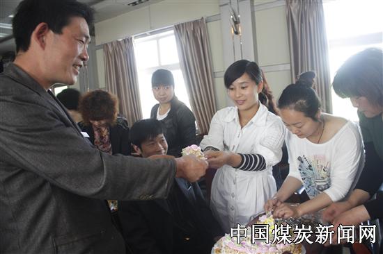 中国平煤神马集团香山矿深切关怀农民工,女工协管员为农民工举行了“情暖职工”生日联谊会,图为活动现场。