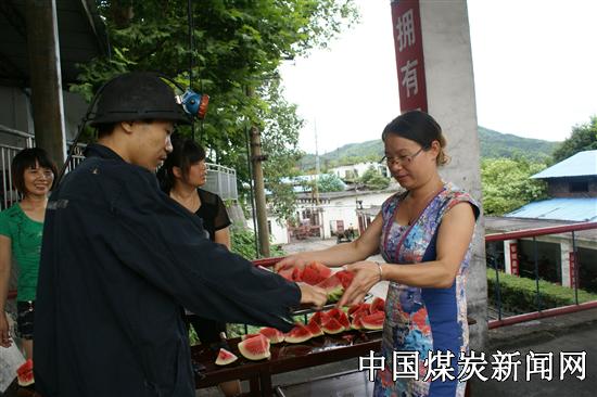 本网讯(陈向阳 摄影 报道)7月25日来,湖南煤业集团公司南阳矿业公司女工委组织女工、家属开展了向井下员工及地面高温环境下作业者送清凉活动,连日来,共为一线员工送去西瓜4800斤,这是该公司在酷暑高温天气开展防暑降温工作的一个缩影。