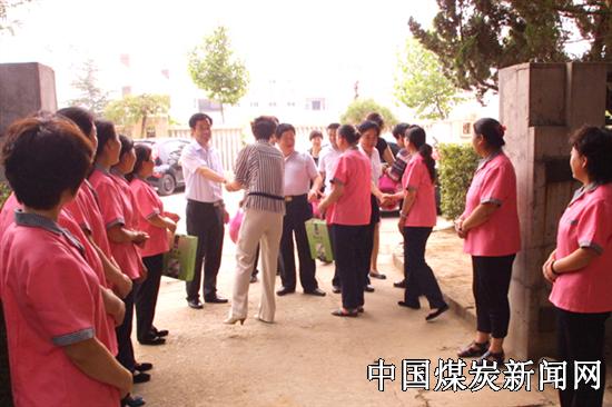 ![]() 图为:中心领导看望承担着600多名单身矿工后勤保障任务的南单公寓服务人员场景。