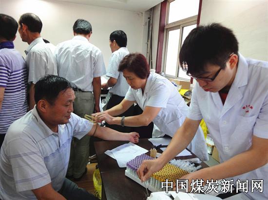 ![]() 图为该矿劳资科人员在组织职工进行职业病健康检查现场