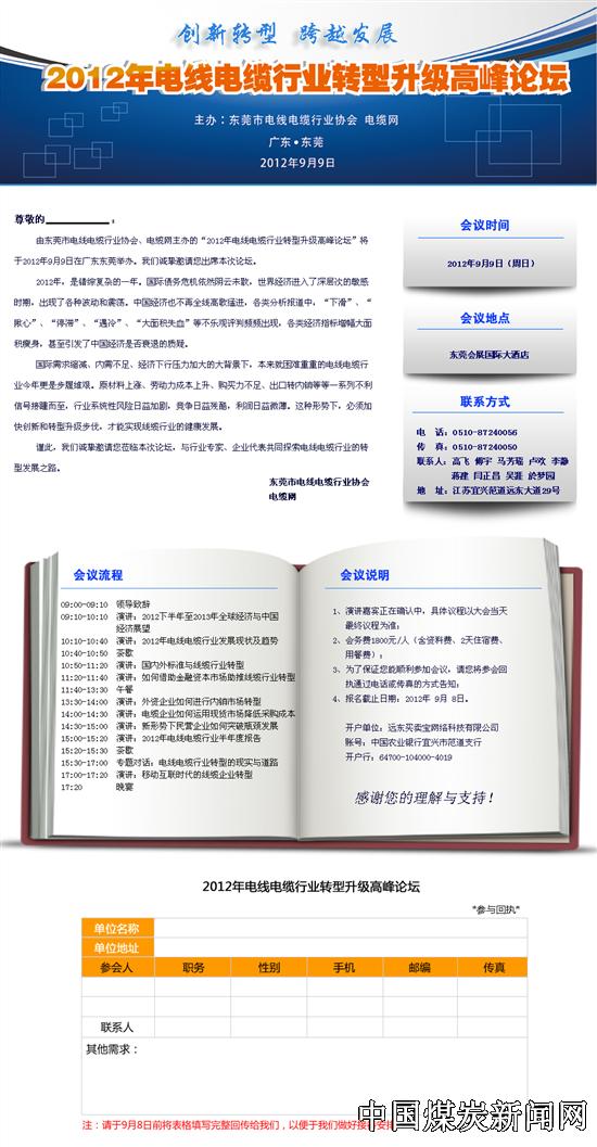2012年电线电缆行业转型升级高峰论坛 *参会回执*