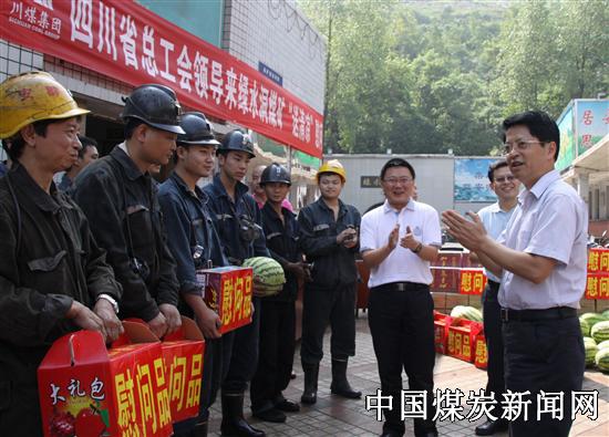 8月17日上午,四川省总工会副主席唐科伟率财务部部长李茂林、事业部副部长黄嵘一行,在广安市常务副主席纪洪强、川煤集团广能公司董事长、党委书记高正强、纪委书记、工会主席何峥嵘等陪同下,顶着烈日、冒着酷暑,深入绿水洞煤矿、嘉华机械厂等单位看望慰问战斗在生产一线的职工们,为他们送去了香甜可口的西瓜、梨子、加多宝等防暑降温品,用温情和关爱播洒甘露滋润着矿区职工心田。