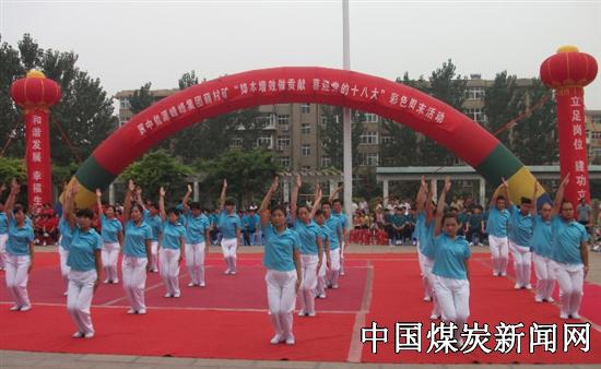 薛村矿工会开展了“降本增效做贡献,喜迎党的十八”彩色周末活动。图为职工正在做第九套广播体操比赛。(韩磊摄)