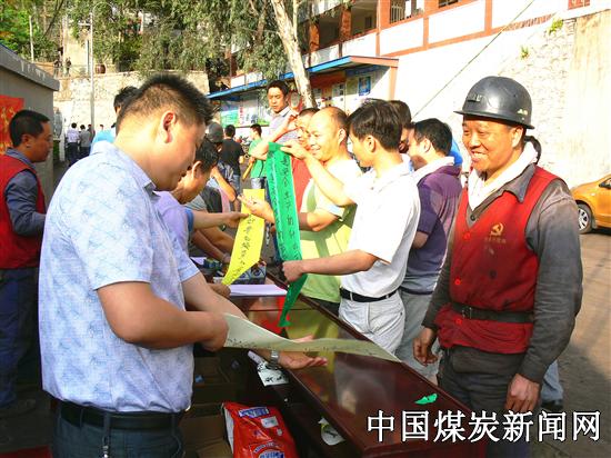 ![]() 在该矿职工浴池外活动现场,过往上下班的党员职工们都能积极踊跃地投入到活动中,他们纷纷抽取安全知识抢着答题,并且积极主动地在印有“安全从我做起、为党旗添光彩”千名党员职工安全承诺签名横幅上签下自己的名字。