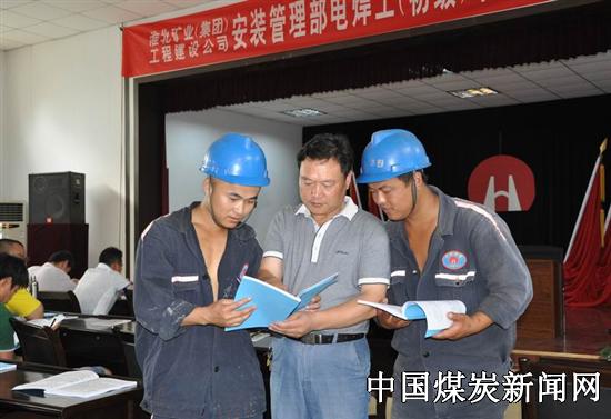 安徽省淮北矿业集团第十一届职工技术比武运动会开幕以来,激发了矿区青年职工学技成才的热情,纷纷向技术状元和能手看齐,各基层团组织及时开展“名师高徒赛”、“争当‘金蓝领’、”“拜师结对”和“技能培训”等活动,努力为矿区青工搭建岗位成长成才的平台。图为8月1日工程建设公司安装项目部的青工参加技能培训之余,正在向“电焊大拿”黄文连(中)请教电焊技艺。
