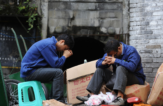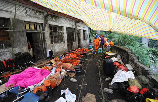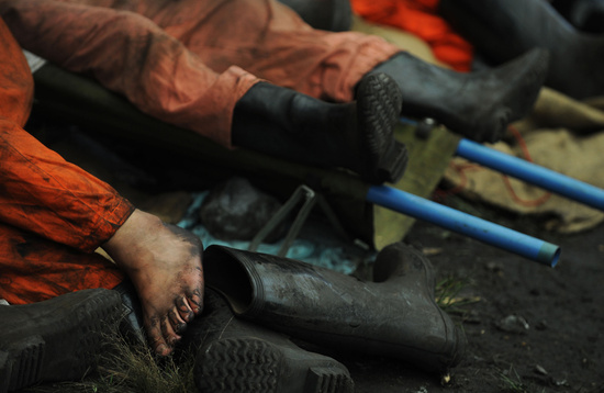 | 四川万源煤矿瓦斯事故救援者脸庞盖满煤灰 | |||