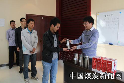【本网讯】 近日,眼看天气逐渐转凉,为了让在井下工作的职工随时喝到热水,陕北矿业涌鑫公司安山煤矿通维队队长丁佳和副队长王振民二人共同出资为职工购买了一批保温杯。9月14日下午,该队队长亲手将保温杯发放到职工手中。职工们都为队干的贴心关怀拍手叫好,一致表示要将队干暖到心里的关怀转化为工作动力,在井下工作时牢记安全,上标准岗,干标准活。 (付诗春/文 黄杰/图)