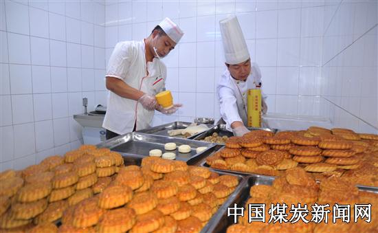![]() 9月19日,山西潞安集团常村煤矿餐饮中心的贾师傅和王师傅正忙着为全矿矿工精心制作月饼。
