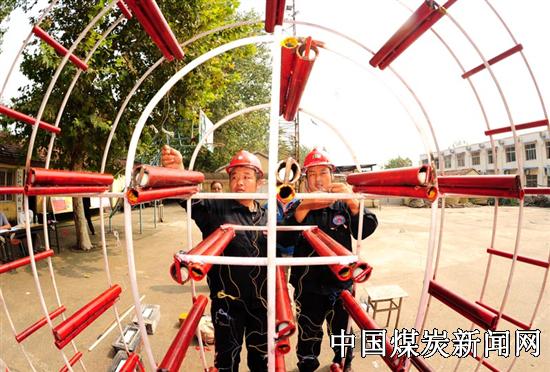 9月18日至20日,安徽省淮北矿业工程建设公司举办了第三届“名师高徒大赛”活动,63对师徒参加了耙矸机司机、井下采掘电工、放炮工等6个工种的理论和实操大比武。师徒们同台竞技、展示风采、交流提高,激发了广大青工学技术、比技能、创一流的热情,掀起了师徒岗位比贡献、青春建功在一线的热潮。图为9月20日,一对师徒正在进行放炮工实操模拟演练。