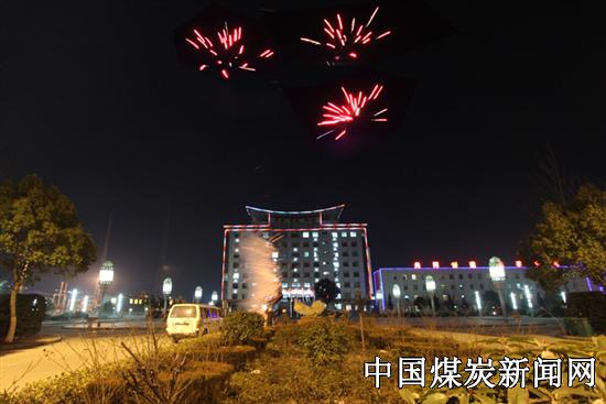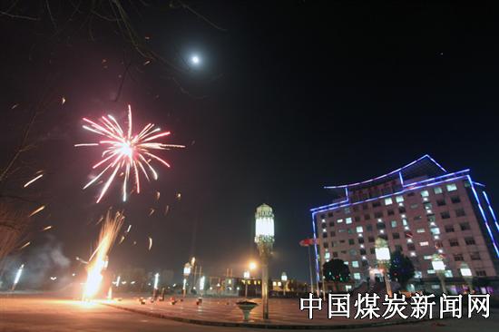 随着3、2、1、0到计时声音的传来,在2013年凌晨12点新年到来之际,恒源股份任楼矿办公楼前广场上鞭炮齐鸣,礼花竞放,2013年庆元旦烟花表演在零点时分拉开帷幕。一束束“火树银花”把节日的矿山夜空照耀得五彩缤纷、光彩夺目。(董志红摄)