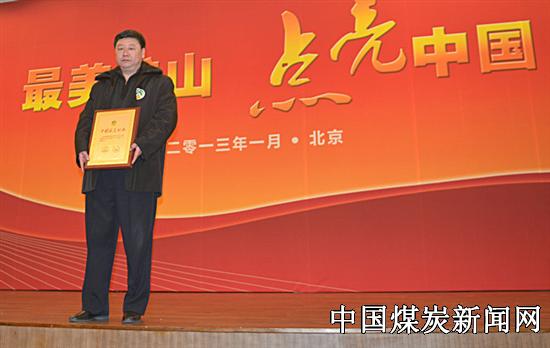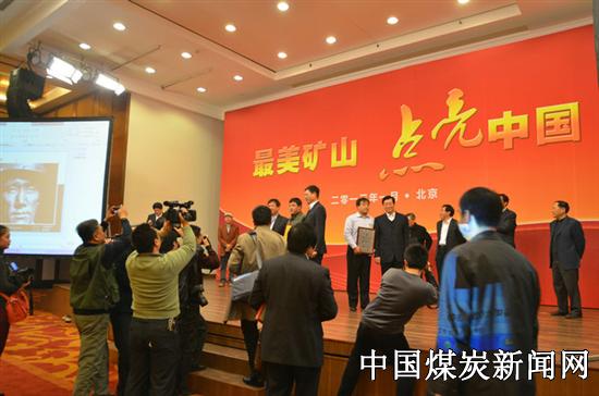 本网讯 1月11日上午,由国家能源局煤炭司与中国能源报社共同举办的“寻找中国最美矿山”大型公益活动在北京京都信苑饭店举行颁奖仪式, 比德煤业党委书记方鹏飞上台领取了奖牌。