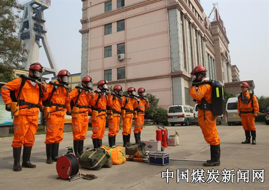 为确保此项工作的顺利进行,唐口煤业公司的党政领导高度重视,精心组织,合理安排,先后多次对演练方案进行专题研究,编制了《矿井防火灾应急救援演练预案》,成立了演习指挥部,由公司总经理陈启友任总指挥,由公司通防科、安监处负责组织具体实施。30日上午12点,唐口煤业信息调度室,一阵急促的电话声响起,开拓一队跟班队长杨绪凯汇报1303皮顺皮带机头发生了火灾事故,由于火势较大,需要停产撤人,值班调度员方伟接报警电话后,立即命令杨绪凯组织职工撤出火灾危险区域,并迅速通过应急救援广播向井下各施工地点的人员发出停产撤人通知,接着向矿值班领导安监处长邵昌尧汇报火灾险情。邵处长接到汇报后,立即通知机电队做好副井提升准备,并向公司总经理陈启友汇报险情,总经理陈启友宣布成立矿井应急救援总指挥部, 2013年度火灾应急救援演练正式开始。集团公司救护大队、公司安监处、通防科、保卫科、机电科、医疗救援、技术分析等7个抢险应急小组按照既定预案迅速到位。13:18分,历时78分钟,参与演练的井下840名职工全部顺利升井。 通过此次演练,进一步提高了公司应对矿井火灾事故的综合处置能力和各单位的协调能力,增强了广大职工发生火灾应急处理的安全知识,给广大职工上了一堂安全教育课,演练达到了预期目的。图为救护队员入井前检查救援装备。