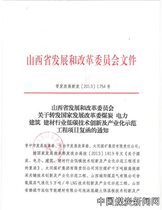 | “山西瑞阳煤层气有限公司含氧煤层气液化5万吨/LNG项目”被国家发改委评为低碳技术创新和示范化工程 | |||