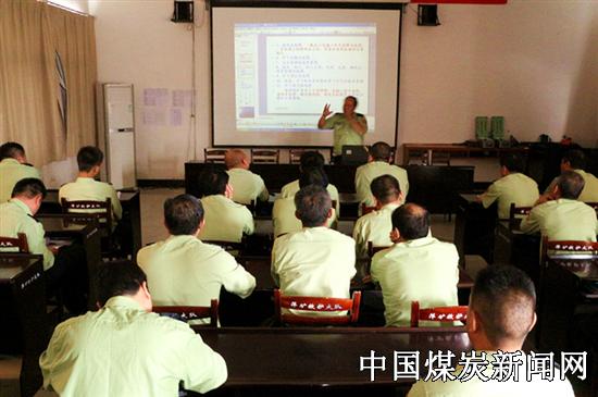 萍乡大队中队管理干部在认真听取煤矿安全生产采掘生产工艺理论课。