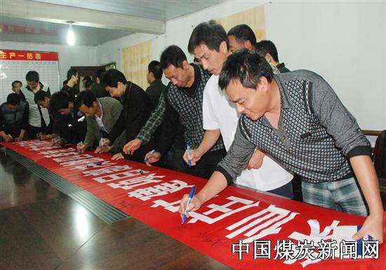 【本网讯】 四季度以来,淮北矿业工程建设公司以开展“决战四季度、奋力保安全 ”活动为契机,通过召开动员会,深反思大讨论,签订层级安全责任状,安全承诺签名等形式,营造浓厚的安全氛围,坚定了公司职工实现安全年的决心。图为:该公司朱仙庄矿建项目部职工在举行安全承诺签字。