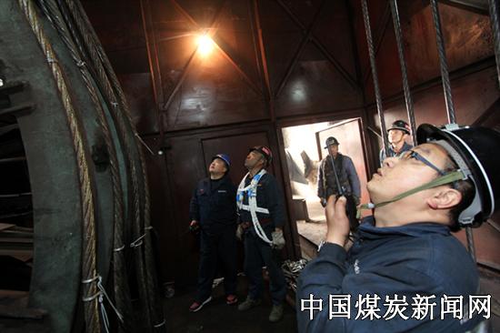 上午8点25分,笔者来到主井一楼,看到一道安全绳将施工作业区域隔开,10余名机电检修人员分成3组,正在紧张有序的进行送绳、卡绳作业。“本次换绳最大的不同是改变了以往施工方式,我们在一楼与旧绳90度角位置安装了四个固定导向摩擦轮,新绳通过导向轮与旧绳搭接,固定后利用旧绳带新绳放至井下。这种施工方式不仅避免了以往换绳时新绳与木料之间的摩擦受损,同时极大缩短了换绳时间,往年换绳需要2天时间,机电检修人员起重吊拉要付出高强度的劳动,今年换绳第二天上午就能完成。在现场指挥施工的机电科负责人高广忠向笔者介绍。