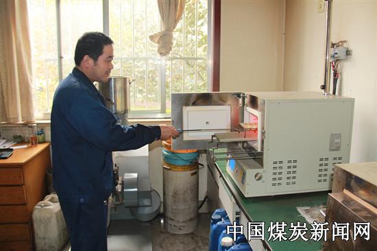 本网讯  最近,山东能源淄矿集团唐口煤业公司为加强煤质检测,新进了一台自动灰挥测试仪,该设备主要用于检测煤样的灰分和挥发分,与原设备相比,可自动控制进样速率,避免人工操作带来的误差,同时其升温时间比以前缩短了10分钟,加快了为选煤生产提供煤质数据,确保了选煤产品质量合格。图为11月12日化验人员正在取出烧好的煤样。