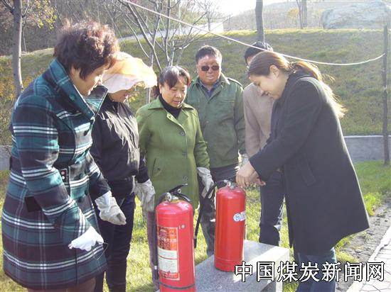 为了搞好冬季防火工作,阳煤集团一矿综合服务中心利用班中学习消防知识,远离火灾,并增强消防意识。图为,造林队义务消防员正在讲解灭火器使用方法。王莲花 摄影报道
