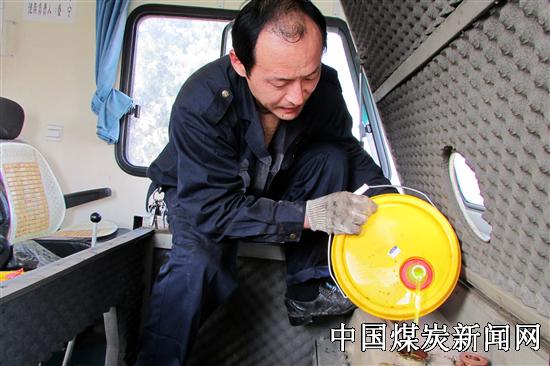 淮北矿业铁运处烈山工务段积极开展“决战100天、实现安全生产”活动,认真落实人身、设备和行车安全措施,加强线路维修、隐患的整改工作以及机车等基础设备的保养和维修,确保年终安全生产。 图为该段朱仙庄领工区电车班职工在对电车进行常规保养,加注防冻液,确保机车在冬季的安全运行。 (李建 摄)