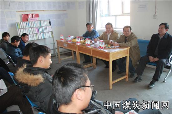图为该公司领导在采煤队会议室内与各界大学生亲切沟通。(周送、戚晨晨)