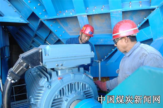 图为巡检人员正在检查煤炭破碎系统电机工作状态。