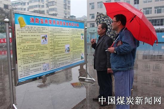 11月9日,山西阳煤集团二矿职工冒雨在广场观看消防安全知识图片展。为增强职工的防火安全意识,提高灭火实战技能,该矿上午,在矿广场举办了消防安全宣传日,通过发放宣传单,制作安全消防牌板及现场由专职消防人员给大家讲解了各种灭火器的使用范围及使用方法消防灭火演练,进一步增强了人们的消防安全意识,使大家对防火安全的重要性有了新的认识。