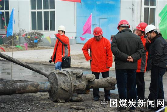 在施工现场,大家爬上高约2米的钻机施工平台,共同观看了该钻机施工的操作程序。ZJ30G钻机是河南省煤田地质局二队在去年8月份与陕西宝鸡瑞达石油机械公司共同联合研制的,并顺利施工了辽宁沈煤集团红阳三矿大口径冷冻井项目,创出了目前国内深度最大、钻遇地层较复杂的大口径钻井。
