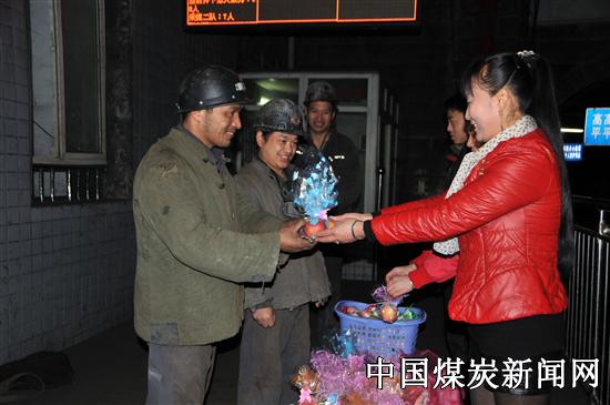 该公司青年志愿者和家属协管们带着祝福来到井口、调度室、主井广场、配电所等生产现场,将代表平安与祝福的“平安果”送到一线职工手中,并为他们送去了节日的祝福。