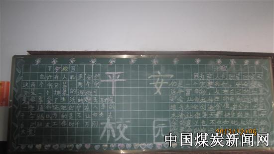 为推进学校安全教育活动的深入开展,增强广大学生的安全意识,营造浓厚的安全教育学习氛围,丰富学校的安全教育内容,使学生真正领悟到安全的重要意义,懂得珍爱生命,为创建平安和谐校园打下坚实的基础,达川区斌郎矿山学校于本周举行了以“平安校园”为主题的黑板报比赛。