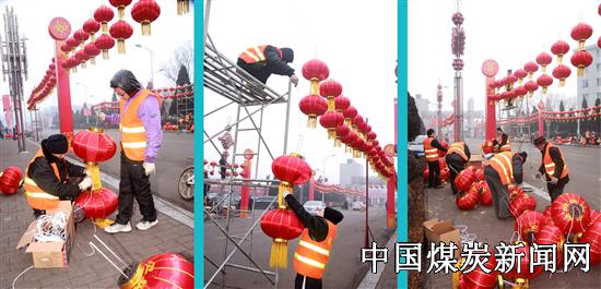 随着元宵节临近,山西潞安集团常村煤矿职工正在矿区街头忙着悬挂大红灯笼,欢庆元宵佳节的到来。和往年不同的是,该矿今年把大型灯展变成了大红灯笼。