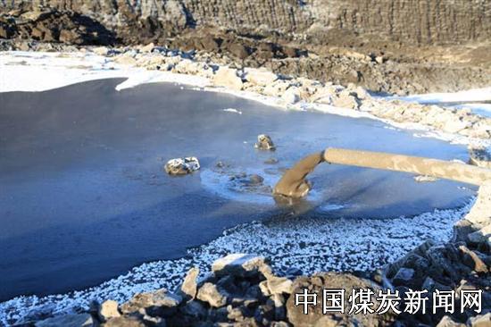 进入冬季,经过论证,露天矿认为在冬季清理积水成本最低,对生产影响最小,最为经济,因此,从元月15日开始,动用大型设备,一边排水,一边清淤,至2013年2月20日,累计完成疏排水30万m³,清理淤泥、冻冰15万m³,彻底消除了煤层底板淤泥给内排土场稳定带来的安全隐患,为春节后全面恢复剥离生产打下了良好的基础。 图为清淤情形。