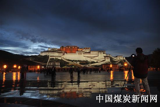 夕阳落下,夜幕中美丽迷人的布达拉宫引来游人驻足观赏摄影留念。