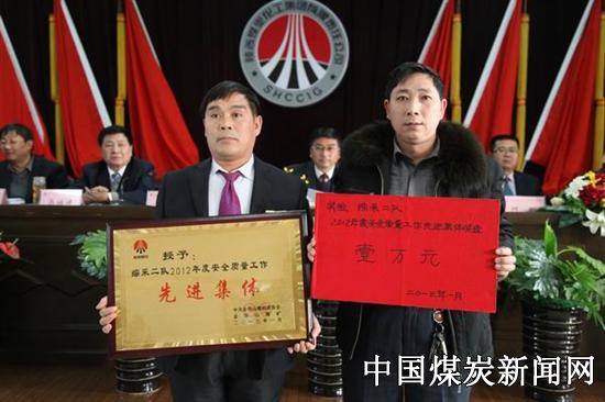 陕西陕煤铜川矿业公司金华山矿广大干部职工围绕安全质量中心工作,团结协作,积极奉献,推动了安全质量管理工作健康发展,2012年顺利实现了安全“零”目标,荣获国家级安全质量标准化矿井等十项殊荣。涌现出了综采二队、通风区、安质科3个安全质量先进集体,侯付才、阮祥云等22名先进个人,赵耀光、董建斌2名安全质量工作突出贡献者。元月30日,该矿召开安全质量工作会,对上述单位和个人表彰奖励。