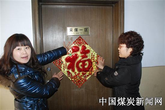 春节临近,鲁安能源集团公司女工开展祝福送一线活动,为采掘区队贴上了大红的福字,表达对一线员工买好的节日祝福.