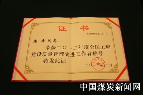 ![]() 三月绚丽,阳光明媚。3月17日,中国建筑业协会工程建设质量管理分会2012年度全国工程建设质量管理优秀企业和先进工作者表彰大会在湖南省长沙华雅国际大酒店隆重召开。湘煤集团楚湘建设工程公司副总经理唐平在这次评选中脱口而出,榜上有名。喜获国家级“先进工作者” 殊荣受到了通报和表彰。从大会上载誉归来,捧回了金光灿烂的奖牌和荣誉证书。这在全国煤炭行业矿建行业获先进个人的仅此“一枝独秀”获此殊荣,在楚湘建工发展史上,这也是公司个人首次获国家级荣誉。