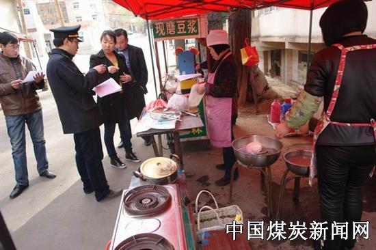 【本网讯】 为了加强春季食品卫生管理,3月19日上午,陕煤铜川矿业公司金华山矿生活福利委员会、安全、保卫、印台区金华山社区卫生服务站、印台区卫生监督局金华山卫生监督站等部门联合对矿区各饮食摊点操作间环境卫生、从业人员健康证、服务质量等方面进行食品安全卫生大检查。提出了具体要求和注意事项,并对个别饮食摊点下发了卫生整改通知书,消除食品卫生隐患,确保矿区居民身体健康。 (图为春季食品卫生大检查场景)