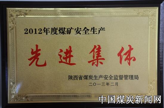 本网讯:日前,陕西省煤炭生产安全监督管理局揭晓2012年度煤矿安全生产工作先进集体,陕煤化集团铜川矿业公司陈家山煤矿榜上有名,荣获陕西省2012年度煤矿安全生产先进集体称号。