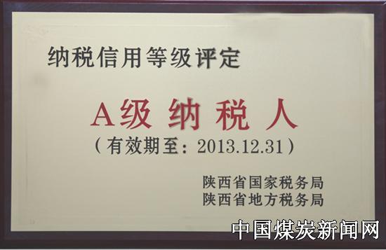 | 陕煤化陕北矿业韩家湾煤炭公司荣获“纳税信用A级纳税人”荣誉称号 | |||