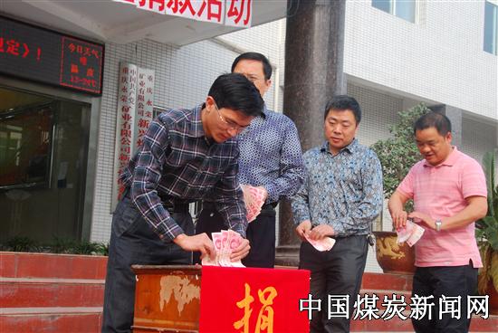 4月24日,重庆能源集团永荣新兴煤矿党委开展“奉献爱心、传递温情”捐款仪式,积极发动广大党员干部和职工群众倾情奉献,慷慨解囊,向芦山地震灾区伸出援助之手,援助灾区人民渡过难关。