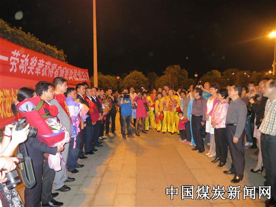 现年50岁的张敬阳,任茶塘矿矿长6年来,通过艰苦探煤找煤,将矿井储量由当时还不到10万吨,增至50余万吨;年产量由不足3万吨,到2012年产量突破66000吨,创历史新高,连续6年实现安全生产,改变了矿井落后面貌,跻身先进单位。连续5年获街洞矿业公司劳动模范和湘煤集团2012年度劳动模范等光荣称号。今年,荣获全国五一劳动奖章。 晚上9点多,张敬阳等郴州市8名先进代表从高铁车站出来,受到早已等候的郴州市总工会领导和群众的热烈欢迎。街洞公司领导和女子腰鼓队前往车站迎接张敬阳。 据了解,郴州市共有2名全国五一劳动奖章、2名全国五一劳动奖状、2名全国工人先锋号和2名全省五一劳动奖章。全国五一劳动奖章张敬阳,是湘煤集团唯一获此殊荣的代表。 ![]()