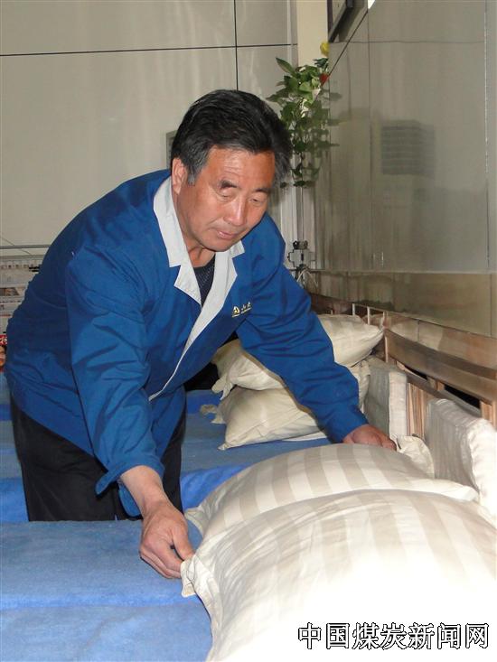 专注、认真,是老程给人的第一印象,在工作上更是细致入微。干澡堂工十多年来他从没出现过一点失误。作为一名澡堂工,他主要负责小澡堂的各项工作,用他的话说澡堂才是他真正的家,平时除了休班,几乎24小时都“泡”在澡堂里。每天重复着同样的内容,这在别人眼里看来有些枯燥而机械的工作,老程却干得津津有味。“没啥好说的,咱这都是为矿上的领导和工人们服务的!”简单的一句话道出了老程的心声。