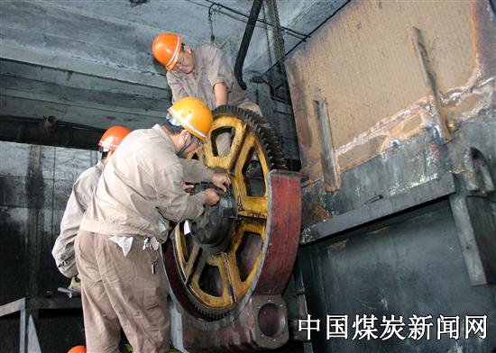 在施工过程中,该公司领导亲临现场指挥,施工人员严格按照安全质量规程施工,充分发扬了不怕苦、不怕累、不怕脏的精神,争提前抓主动,延班加点,持续作战,努力把工程进度往前赶,截止目前,大修已进入收尾阶段。图为职工正在给真空过滤机大轮进行找正和职工正在为真空泵除水垢。
