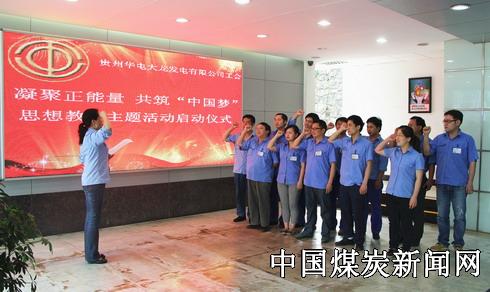 本网讯 为学习贯彻习近平总书记在劳动模范座谈会上重要讲话精神,落实省总工会关于开展“凝聚正能量、共筑中国梦”思想教育主题活动的通知要求,贵州华电大龙发电公司工会于5月14日举行启动仪式,全面开展“凝聚正能量、共筑中国梦”与华电共奋进的思想教育主题活动。