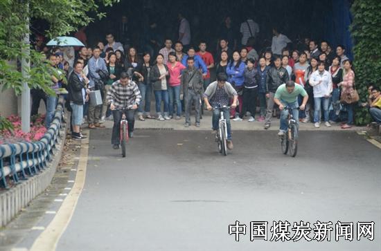 比赛分男、女个人慢车项目;男、女个人爬坡项目;男、女团体绕柱项目的比赛。勘测院职工吕鹏获得男子个人慢车项目的第一名,王弢、邱安全分别获得男子个人爬坡项目的第一名和第二名,勘测院获得团体第一名的好成绩。