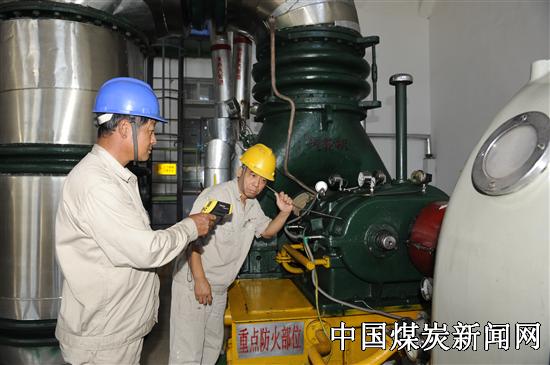 神宝能源公司牢固树立“违章就是事故,安全才能幸福”的理念,深入开展各岗位百日安全大检查,组织相关技术人员对各环节安全生产进行排查,全力保障安全生产。图为供电人员检查汽轮机。