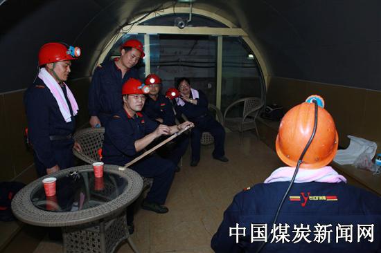 图片说明:张佛在塘内煤矿井下咖啡厅为矿工现场速写。