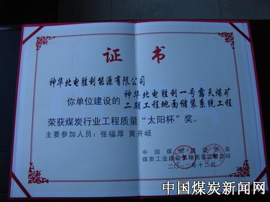 | 神华胜利能源公司二期地面储装系统获全国煤炭行业优质工程和太阳杯工程2个奖项 | |||