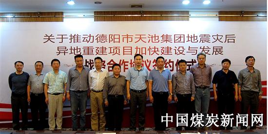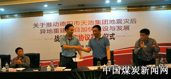 据悉,这次德阳市天池集团地震灾后异地重建项目,加快建设与发展战略合作协议签约议式,是按照2013年2月22日省政府召开的四川省德阳市天池集团地震灾后异地重建项目协调小组会议精神,为推动金堂煤矿加快建设,促进金堂煤业公司健康发展,德阳市人民政府商请川煤集团对金堂煤业公司提供指导与支持。