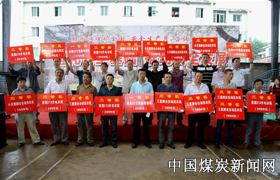 激烈的安全知识抢答赛后,进入最后一个扣人心弦的职工抽奖环节,参加抽奖的职工是2013年4月21日-6月8日未违章或未受处罚的职工。经过长达一个多小时的现场抽奖,产生出一等奖的4名职工分别是:通维队的古跃培、机运队的张家梁、后勤队的杨雪、通风科的周文,分别获得价值近5000元的彩电一台。……每抽出一个等次奖时,全场职工便掌声雷动,欢呼雀跃。获得一等奖的古跃培十分激动地说:非常感谢领导为我们一线职工颁发这样昂贵的奖品,今后,我一定要加倍努力搞好安全工作,为矿山安全和谐发展做出自己应有的贡献。